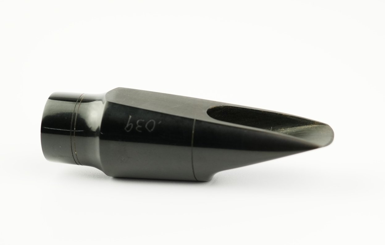 AIZENでリフェースを行い、吹きやすく、息に対する反応が素直で、倍音のバランスが取れた扱いやすいマウスピースに仕上げました。シリアル: #039とあります。新品で歯形や変色などはありません。