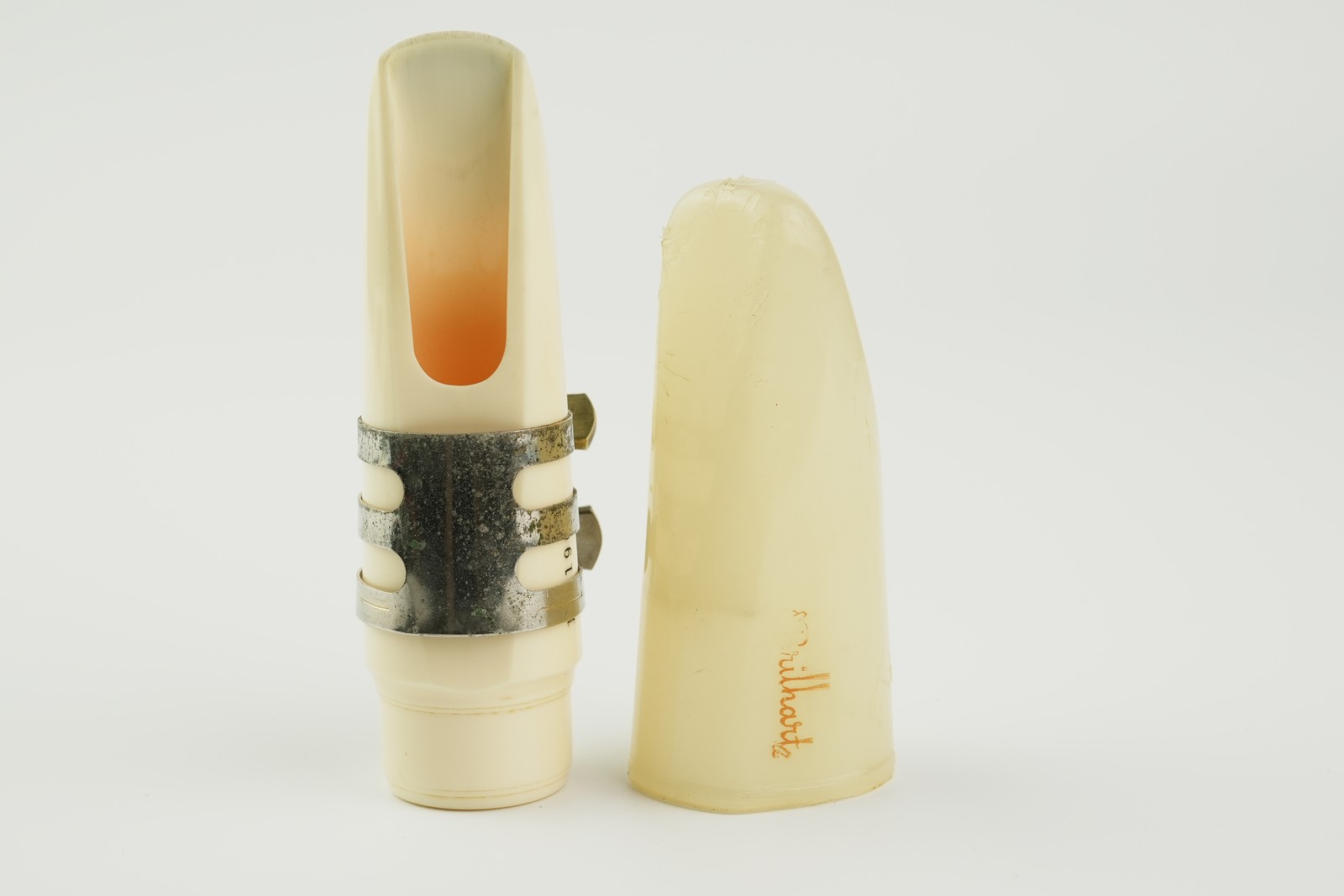 変色や歯形なども無く綺麗です。オリジナルの物と思われるリガチャーとキャップが付属します。