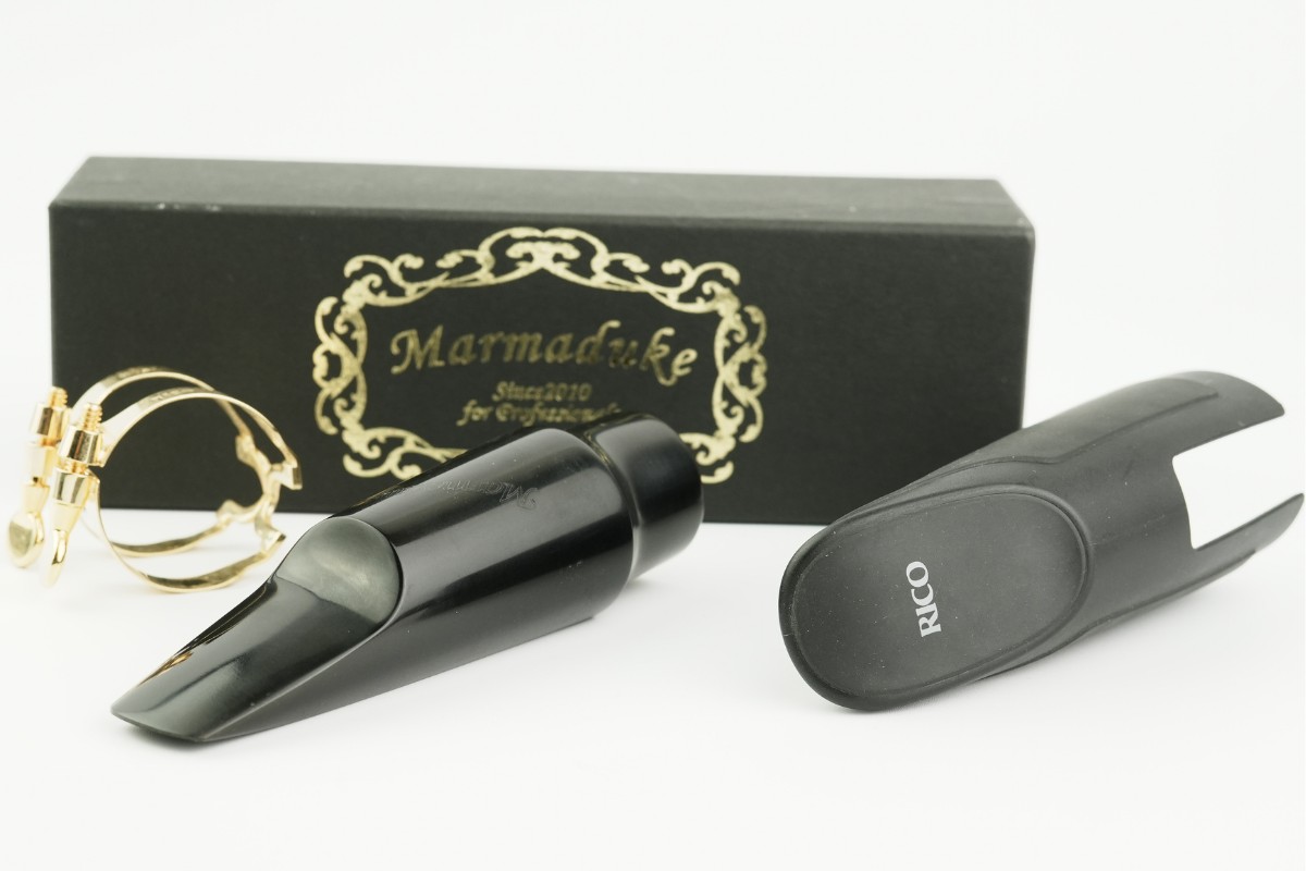 Marmaduke初期のマウスピースです。流線型のボディにミディアムチェンバーのデザインAIZENでリフェースを行い、ロールオーバーバッフルを付けました。吹きやすく、息に対する反応が素直で、倍音のバランスが取れた扱いやすいマウスピースに仕上げました。