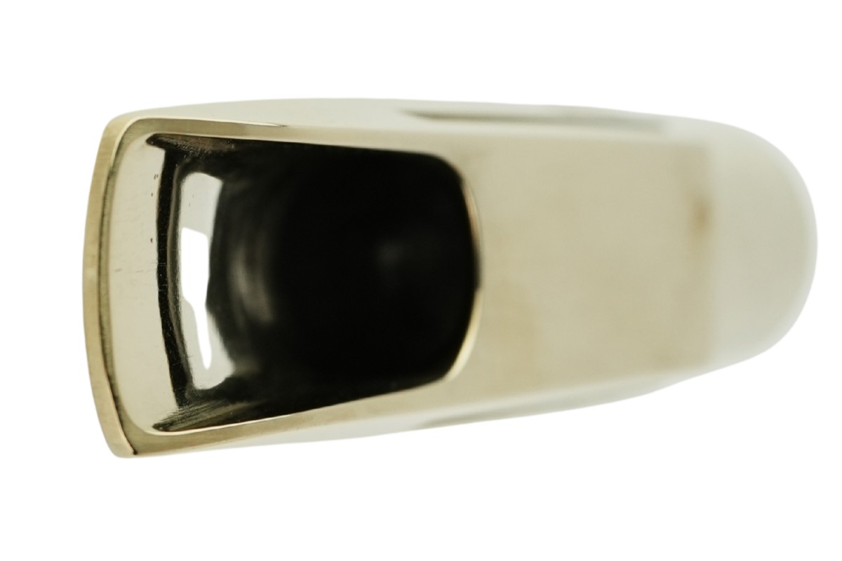 このマウスピースは、ブロンズ製で、ブラス材に無い、締まったダークで硬質なサウンドが特徴です。太く、厚みのある個性的なサウンドは、トラディショナルなジャズに向いています。