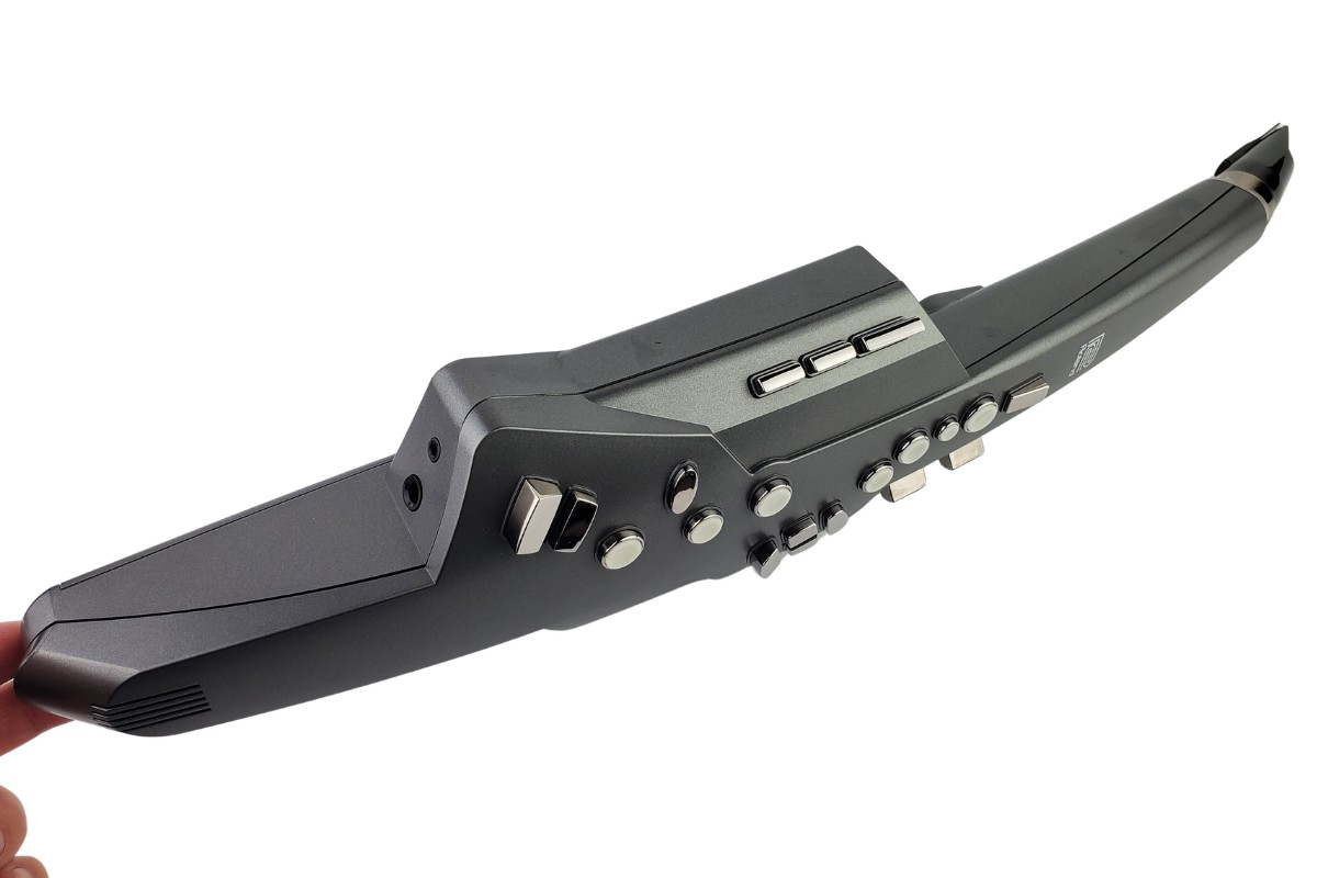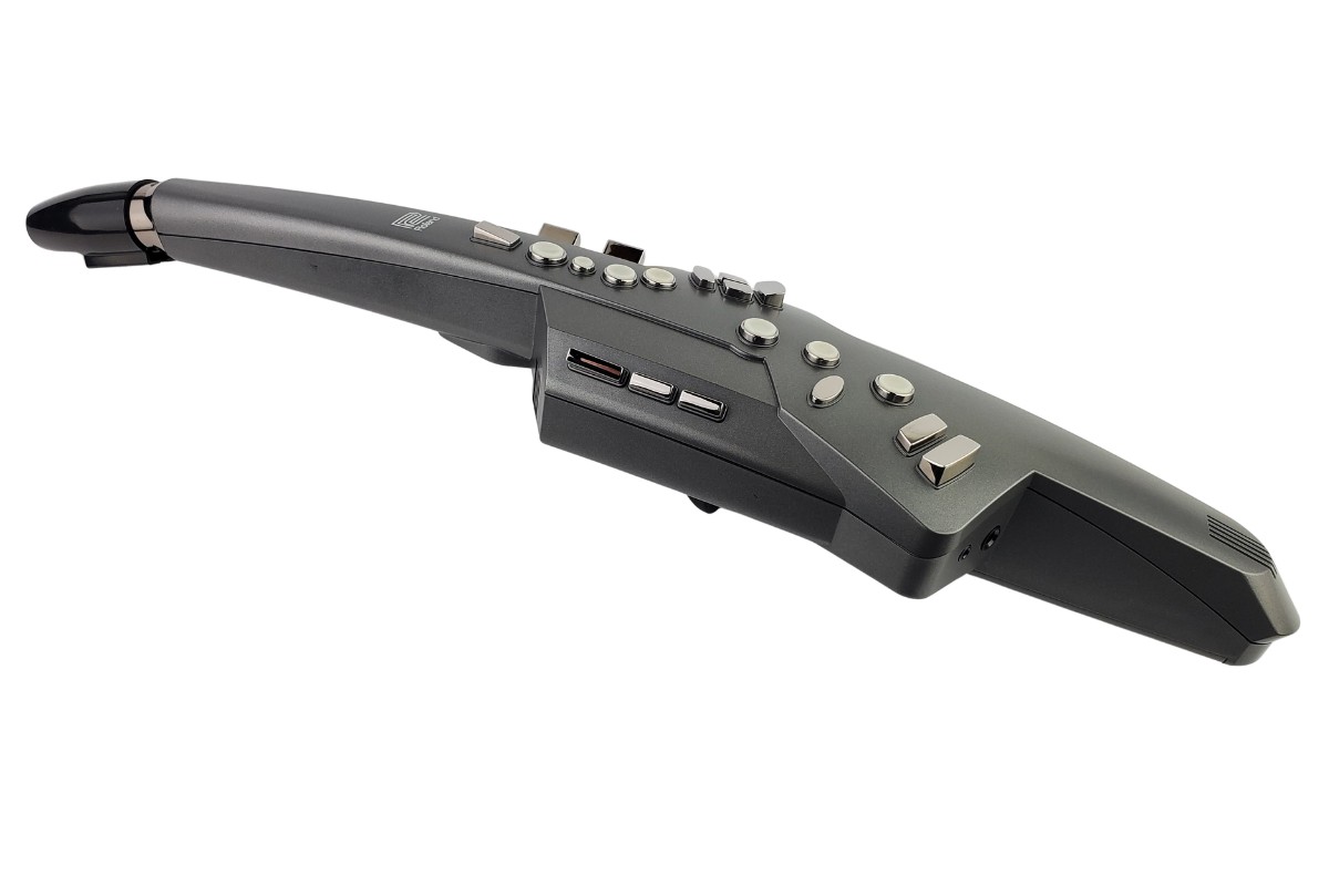 エアロフォンは、まったく新しいタイプのデジタル楽器ですが、アコースティック・サックスと同じ運指で演奏ができます。サックスのキー配列に準じたボタン配置で、左手のオクターブ・キーも装備。リコーダー感覚でも気軽に演奏を楽しめます。リード構造をともなったマウスピースは、内部に高感度バイト・センサーを装備し、マウスピースを噛む力でビブラートやピッチの調整も可能。さまざまなサウンドをブレス・コントロールで表現することができます。